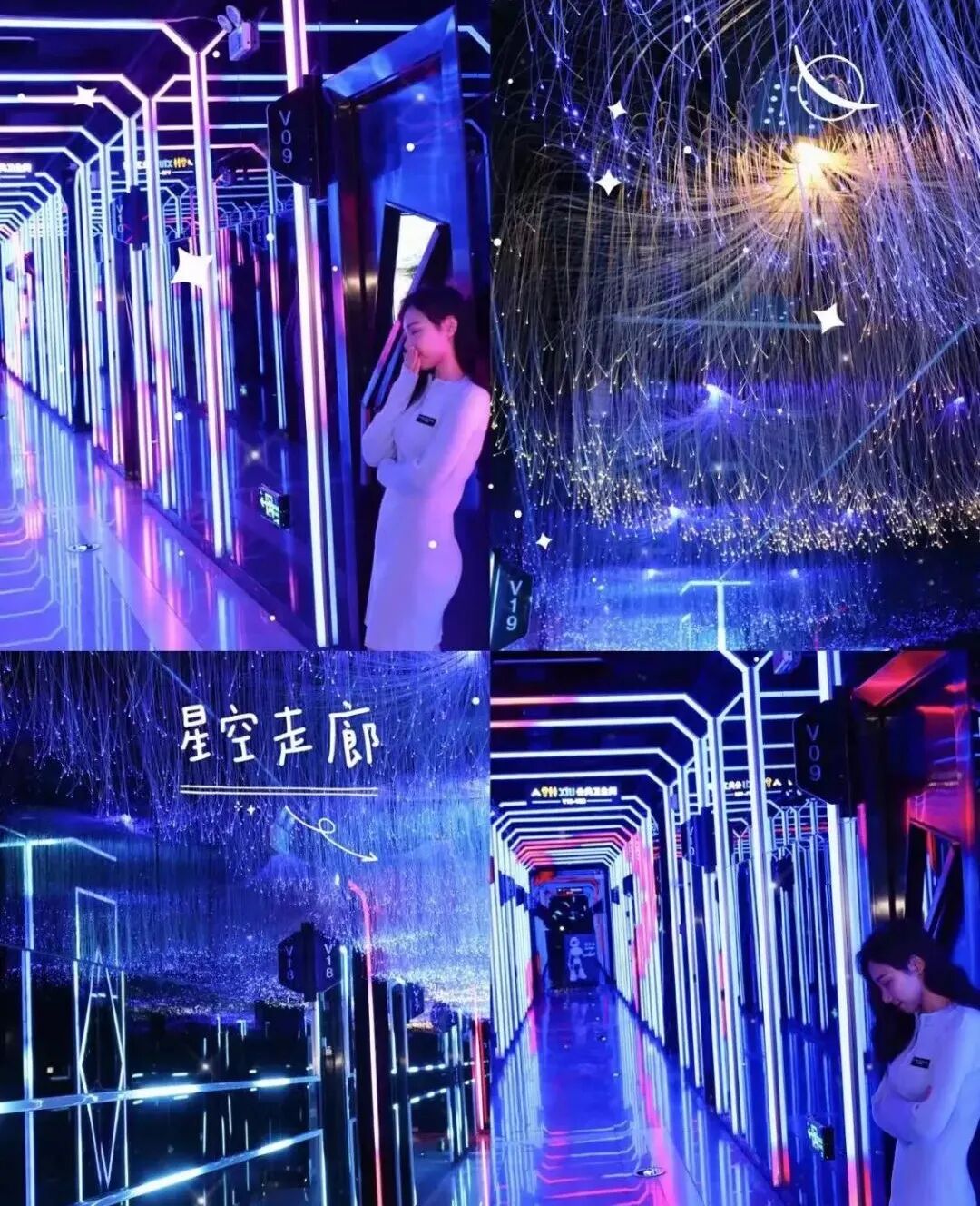 超大炫丽LED大屏背景,现代化的装修风格搭配,四射的炫彩夺目灯光空间设计感十足,装修大气有排面,充斥着网红元素。随手一拍秒出大片,get一款专属自己的拍照风格。