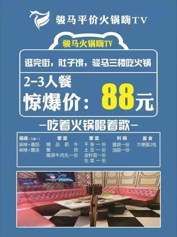 不妨来骏马火锅嗨TV,体验一把边唱歌边吃火锅的快乐吧