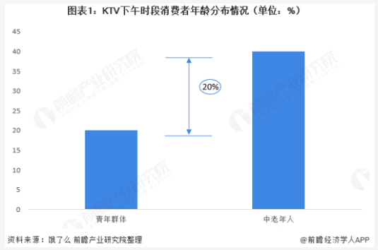 据前瞻产业研究院,在KTV下午时段消费群体中,50岁以上中老年人数比青年群体要高出近20%。