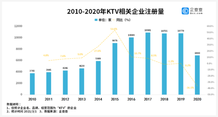 2010-2020年KTV相关企业注册量.数据来源:企查查