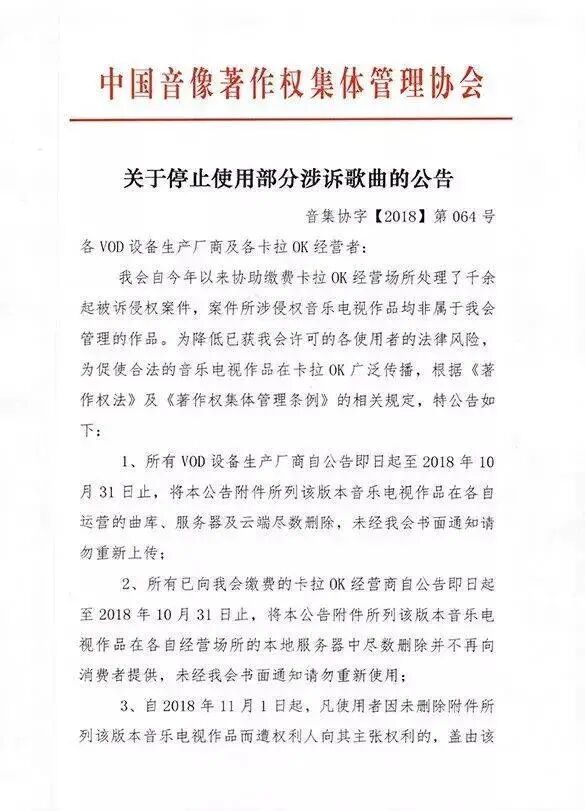其次,中国 KTV 的发展,很长时间吃着音乐版权保护不善的红利。2018 年音协对 KTV 经营商们的诉讼,直接导致各大 KTV 下架了 6000 多首歌。