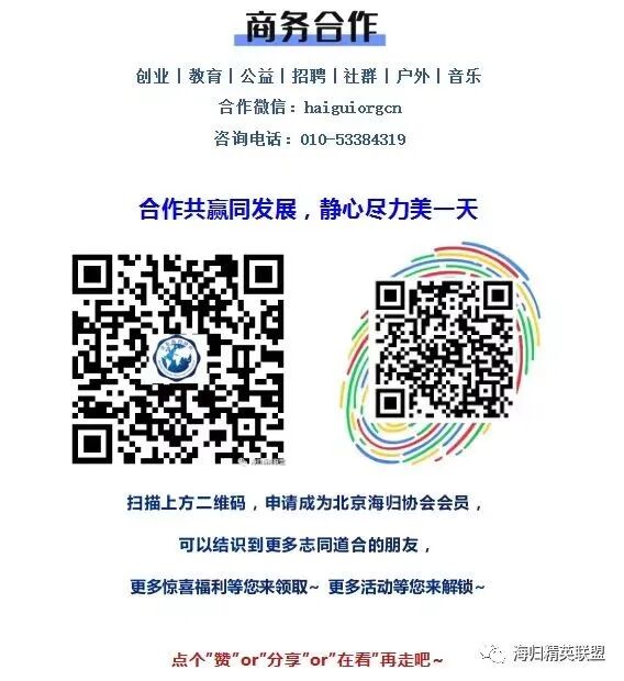 请大家点击上方图片北京海归协会→ 点击右上角...→ 点击设为星标★就不会错过精彩活动啦!