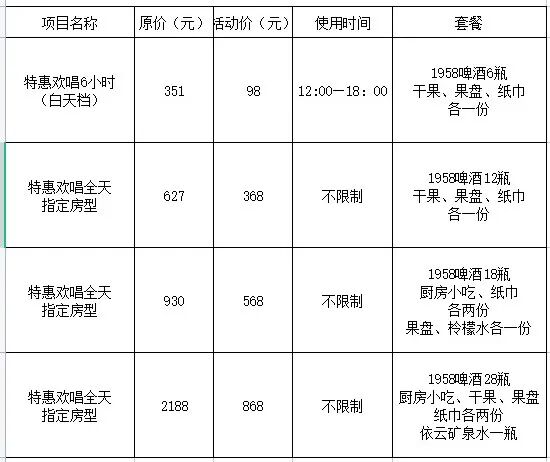 188元中包晚上场4小时欢唱(晚上场18:00~04:00)