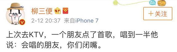 但是前段时间,博主@柳三便 发的一条微博,瞬间扫射了KTV里的表面兄弟和塑料姐妹花们↓↓↓